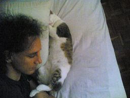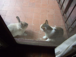 Mai-loo became more tolerant of people since she took to Oam, but only for one or two pets on the head before she’d bat their hand away. Now, this changed only one time when a wild rabbit decided that Mai-loo was his perfect mate. The one physical distinction Mai-loo had was no tail. The rabbit thought Mai-loo was a rabbit too, and hopped all around trying to nuzzle her. Mai-loo didn’t know what to make of the rabbit, who was a large as she, but knew it wasn’t a cat. She didn’t hiss at it, but did bat its head over and over to no effect because she never used her claws. This went on for days. I’d come out in the morning and they’d be sitting on either side of the front stoop like Egyptian sphinxes. Finally, the caretaker of my house took the rabbit home to his kids. I had to make him promise not to eat it. Thais eat most anything.